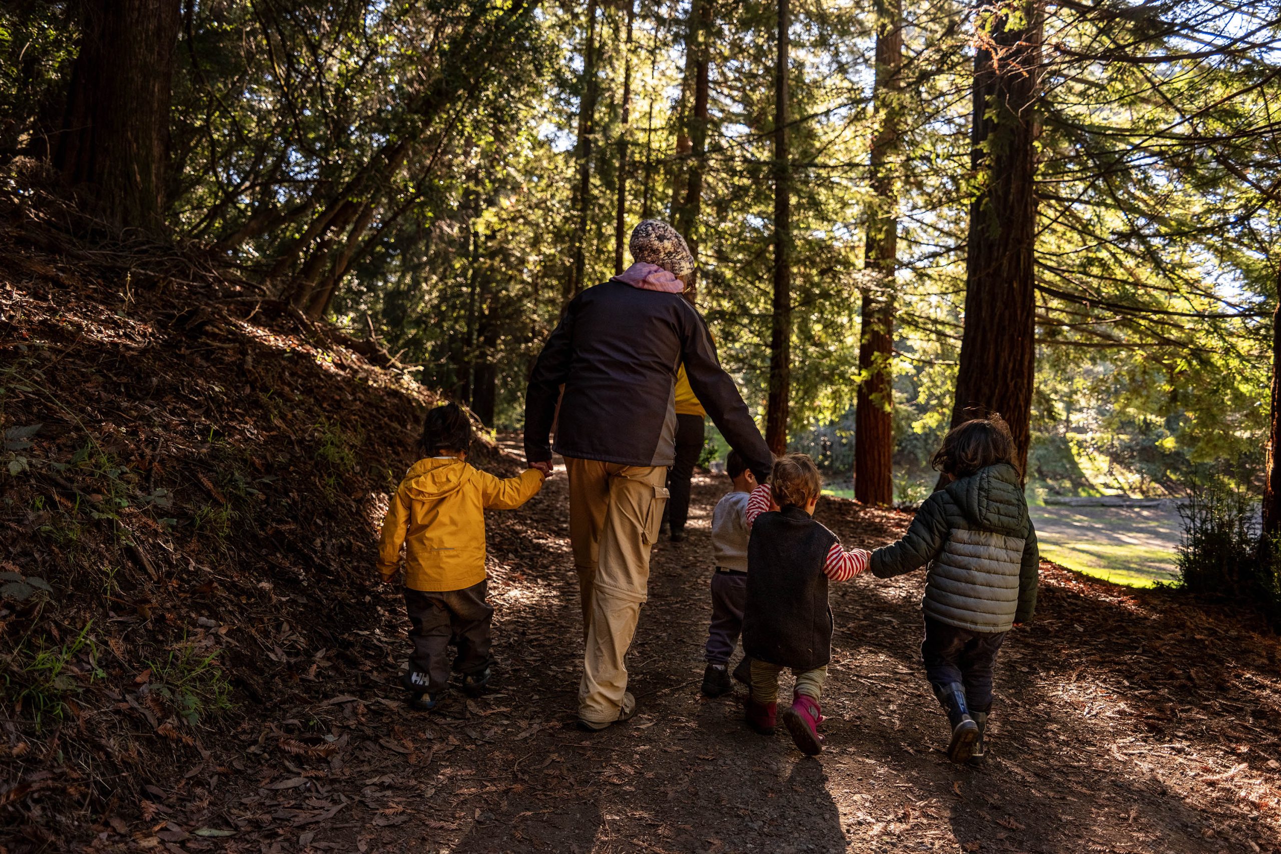 También cuidó a decenas de niños de 3, 4 y 5 años que miraban con asombro mientras descubrían pequeños tesoros en el bosque de secuoyas del parque de Oakland donde cofundó Escuelita del Bosque, un preescolar de inmersión en español que enseña al aire libre.