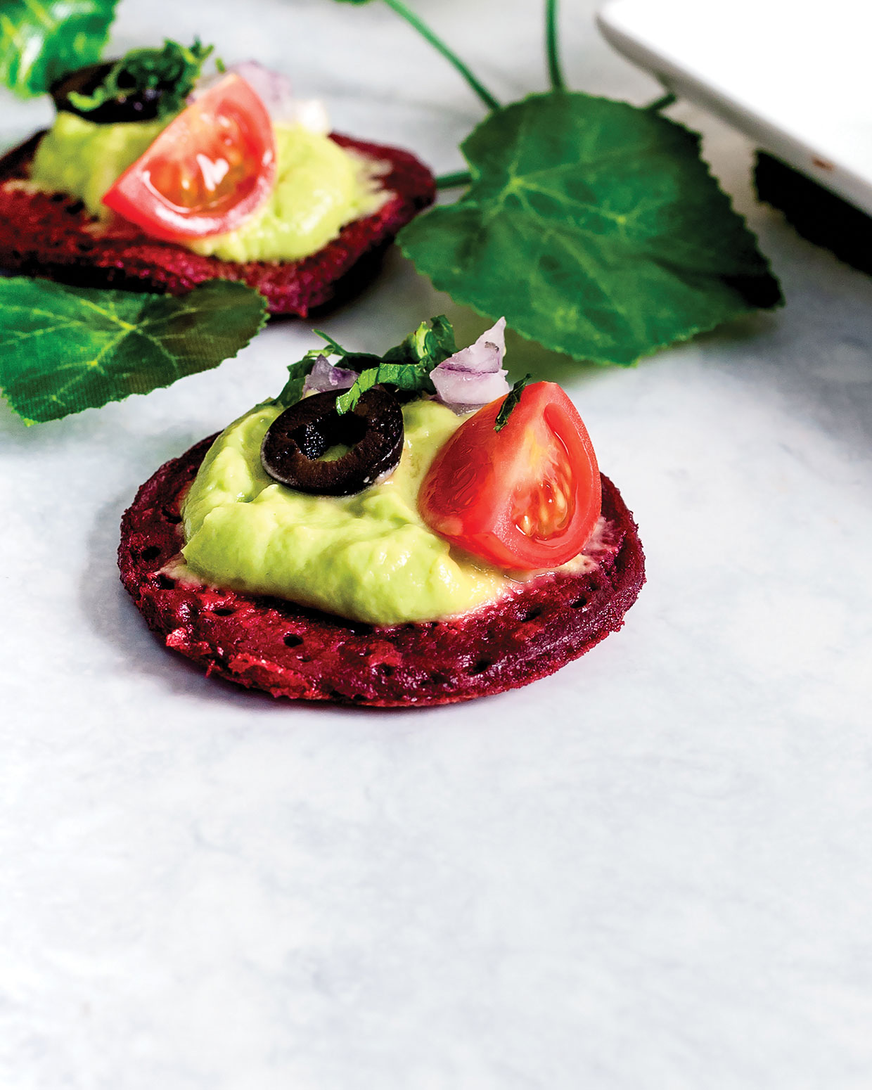 Good for an intimate afternoon tea or an at-home social gathering platter, their vibrant color comes from contemporary grated beetroot, offering a delicate, barely earthy base that contrasts completely with the creamy avocado topping.