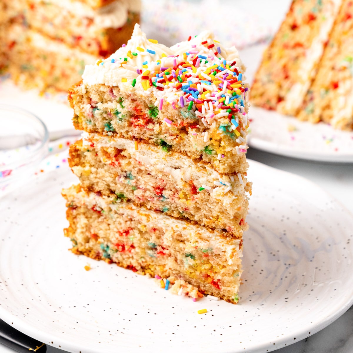 Before everything, let’s speak concerning the cake itself. This cake is mild and fluffy, with a young crumb that melts in your mouth. And naturally, we will not neglect the funfetti! Sprinkles are combined into the batter for a burst of colour and sweetness.