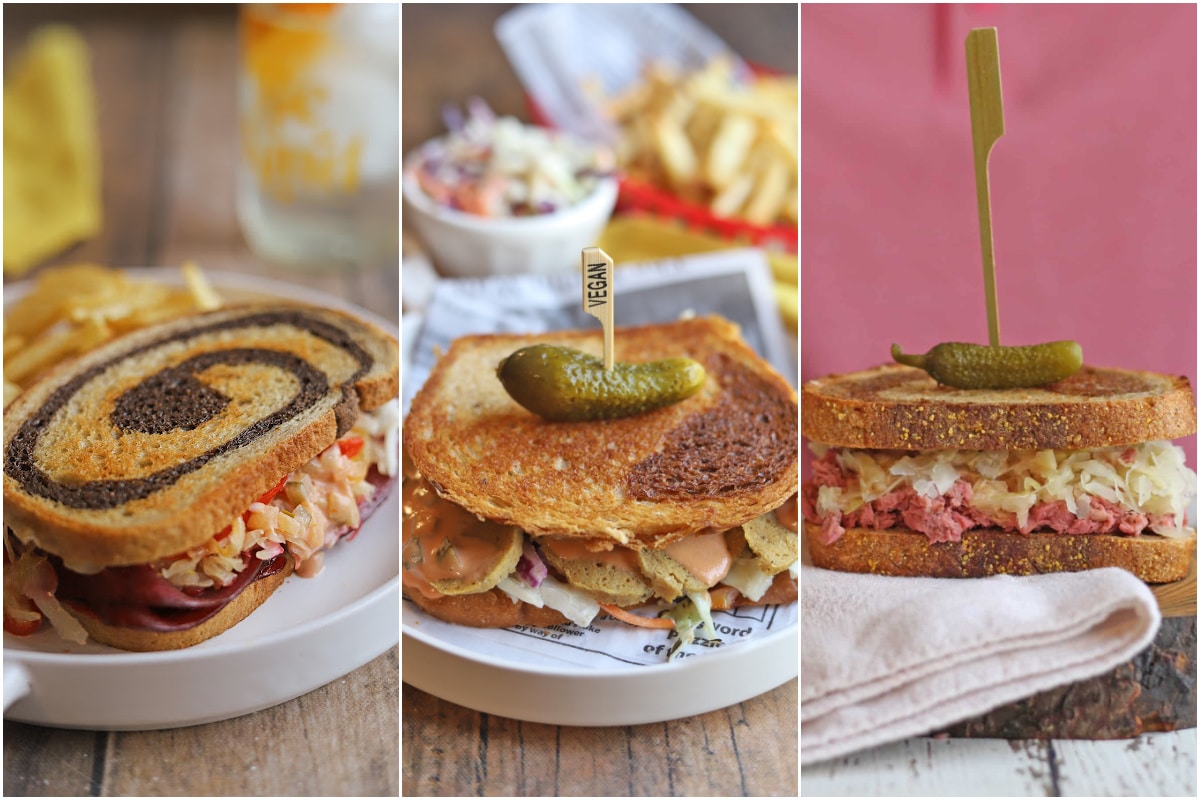 Much like the non-vegan selection, plant-based reubens have a tempting mixture of briny cabbage, creamy dressing, and a toothsome filling.
